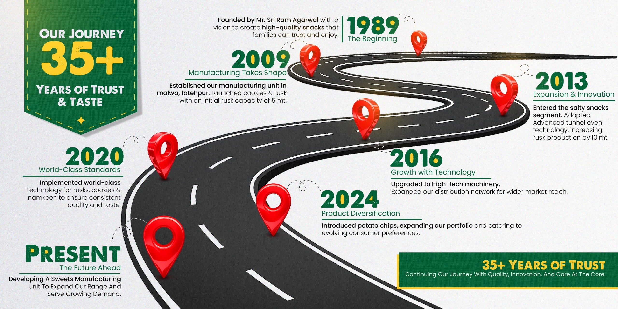In the late 80s, Mr. Sri Ram Agarwal ade a bold decision to enter the snacking industry and create a unique identity for himself. His vision and entrepreneurial spirit led to the birth of Family Snacks. Driven by a commitment to quality and innovation, Mr. Agarwal focused on producing snack products that families could trust and enjoy.